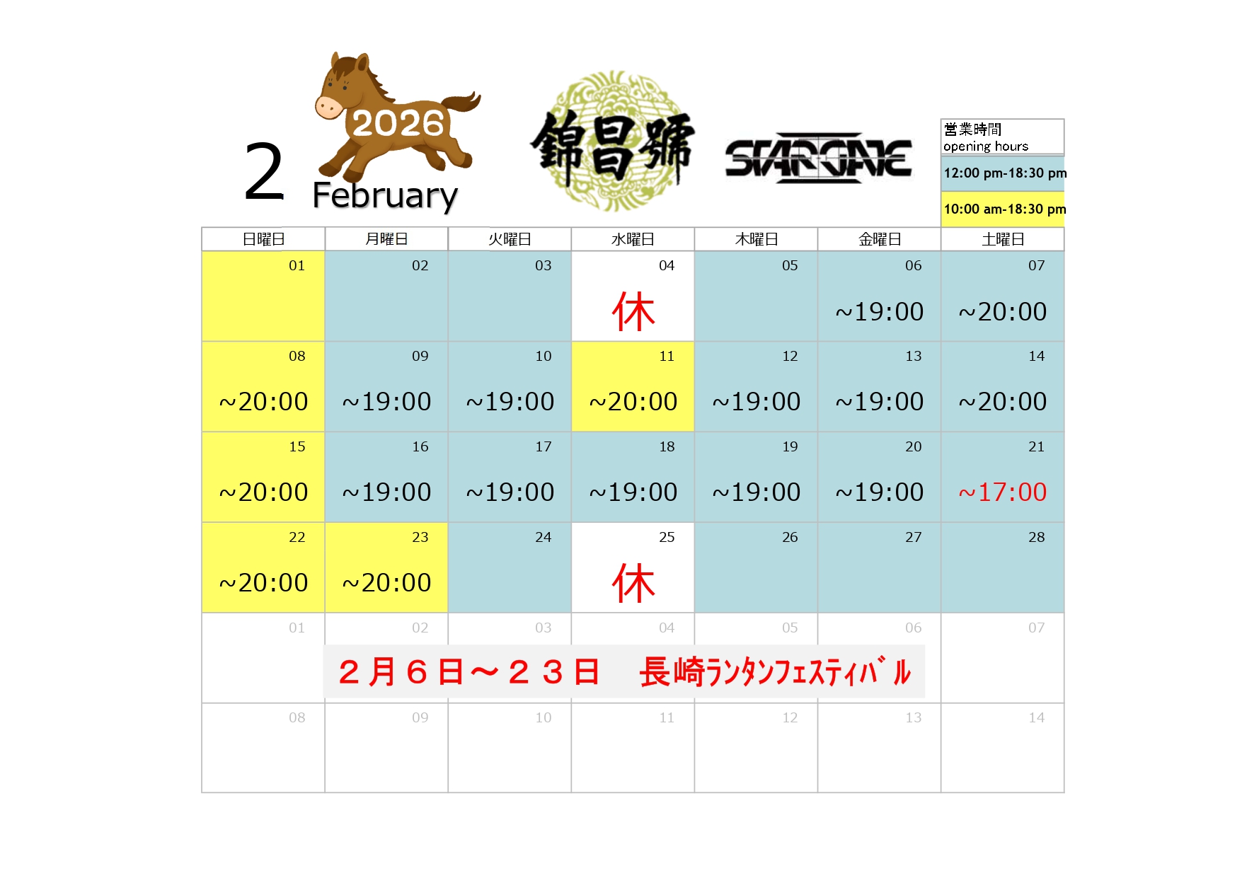 2月営業カレンダー